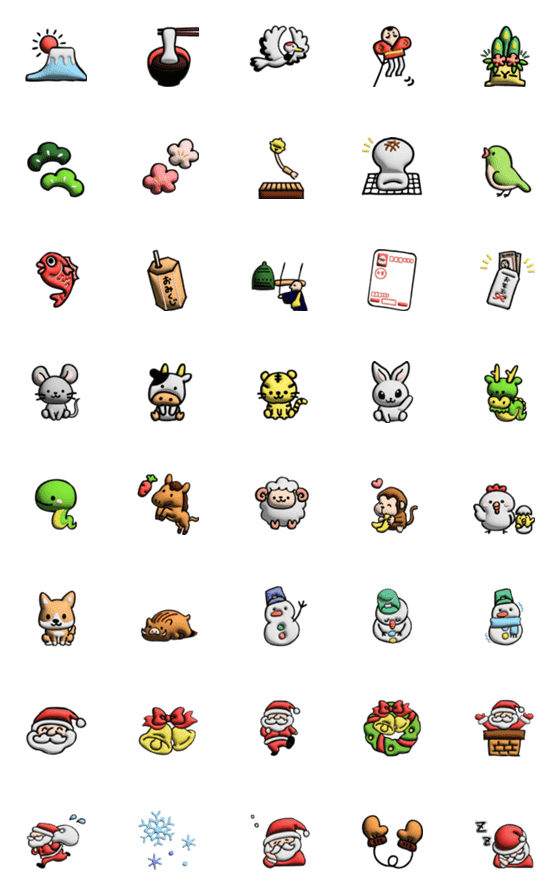 ぷっくり3Dが可愛い、冬の絵文字です。寒い お正月 2024 干支 うさぎ年 辰年 龍 竜 えと サンタクロース サンタさん Xmas 年賀状