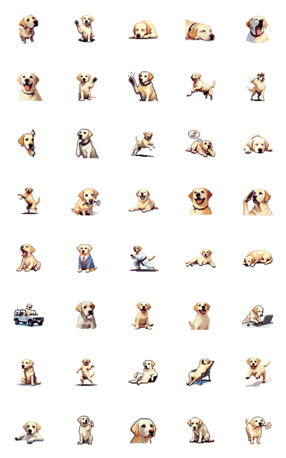ドット絵で描いたラブラドールレトリバー イエロー ベージュ。 犬/日常会話/オオカミ/イヌ/DOG/ロング/ショート/ラブラドールレトリーバー