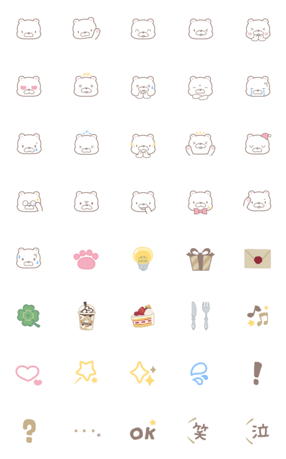 大人も使いやすいシンプルでかわいいしろくまちゃんの絵文字です。