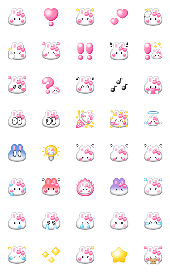 プックリかわいいうさぎさんのアップと使いやすい絵文字がいっぱいです☺︎ぷよぷよ/うごく/アニメーション/大きい/見やすい/キュート/ピンク/リボン/兎/くまさん/ハート♡