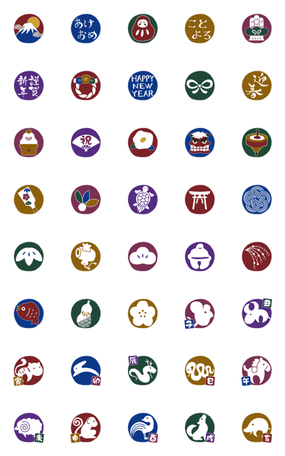 毎年使える全干支セット.子/ねずみ/丑/うし/寅/とら/卯/うさぎ/辰/たつ/巳/へび/午/うま/未/ひつじ/申/さる/酉/とり/戌/いぬ/亥/いのしし/あけおめ/和/モダン/シック/大人(あけおめスタンプ2024対象)