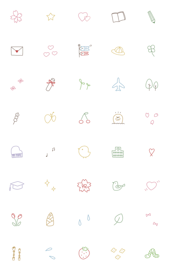 春らしい可愛い線画の絵文字ですゆるい/スプリング/桜/卒業/学校/学生/お花/チューリップ/韓国風/お洒落/手書き