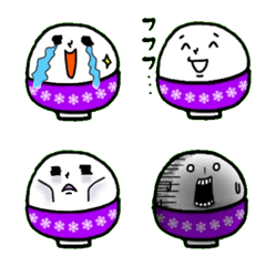 いろんな表情のお茶碗絵文字です。雪模様バージョン。普段使いに、絵文字としても、スタンプとしても使いやすく作りました。『添える絵文字』とセットでも楽しめます。
