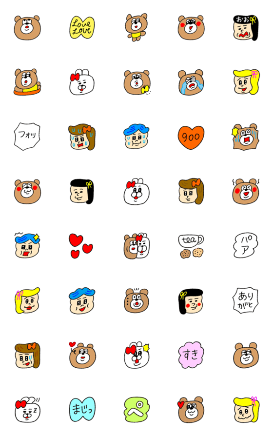 うたぺろ絵文字絵本風/手描き/らくがき/ゆるい/くま/うさぎ/子供