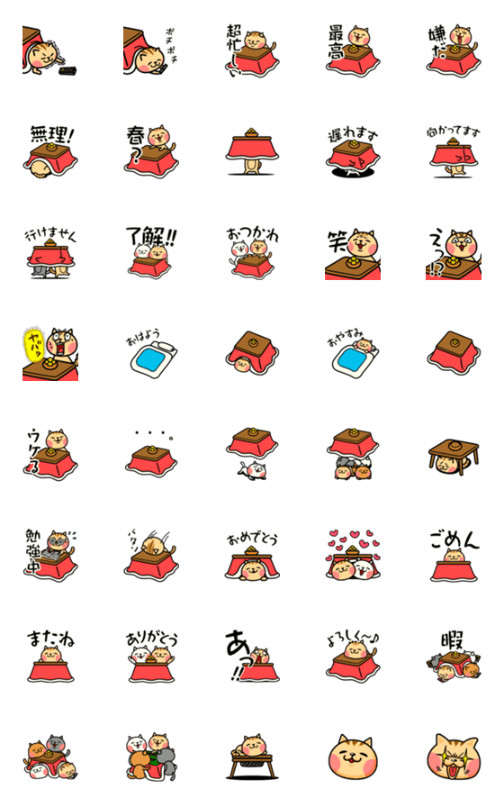 こたつから離れられないネコが登場です。冬の寒い季節にぬくぬくと暖まるねこがあなたの気持ちに応えます。雪国、冬将軍、寒波など寒い時期をコタツ猫と共に乗り切ろう