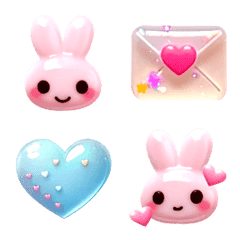 ぷっくりシールの絵文字♡うさぎ/動物/ハート/星/花/スイーツ/アイス/リボン/フルーツ/キラキラ/デコ/平成/ぷくぷく/使える/使いやすい