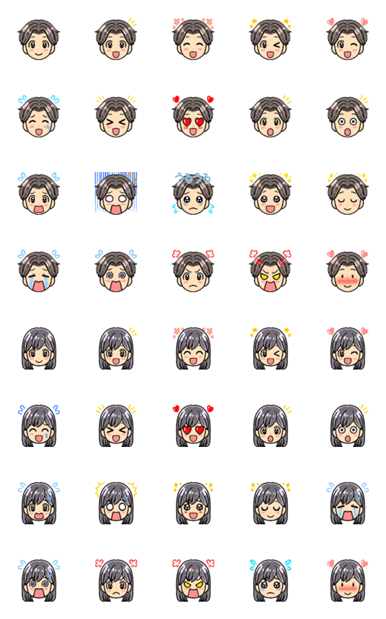 普段使いできる男の子と女の子の表情顔絵文字です。