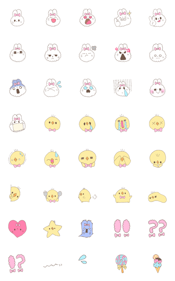 ボスうさぎとひよこ子分たちの絵文字。