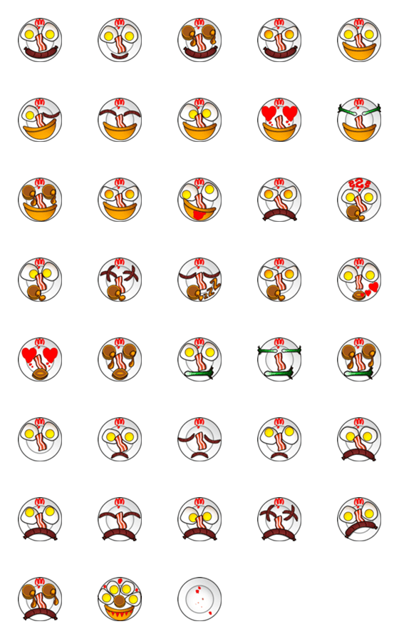 クレイジーな朝ご飯(ベーコンと卵とソーセージ)の絵文字コレクション。