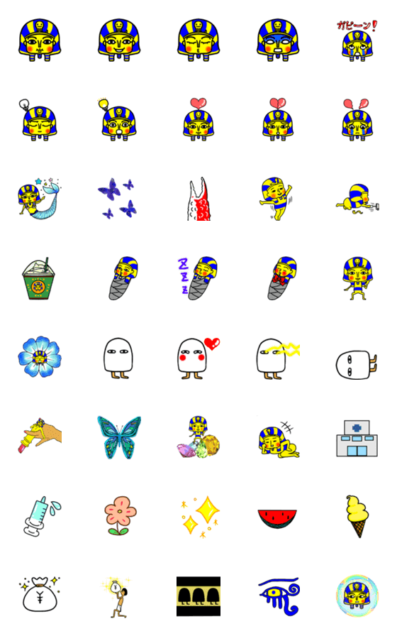 カニの爪に住むファラオ君!!ついにあの有名なファラオくんが絵文字になりました!毎日使って楽しんで下さい。