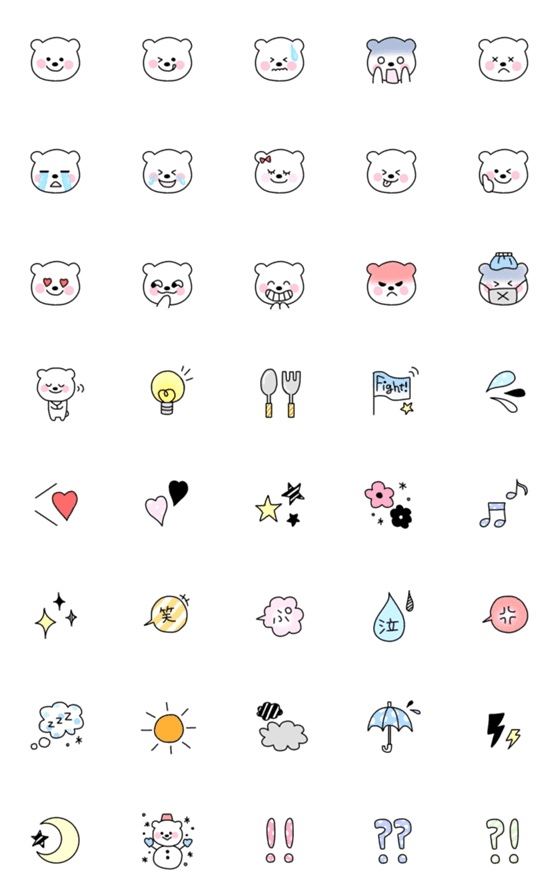 白くまのいろいろな表情と日常会話に使いやすい絵文字たちです♪⁎°