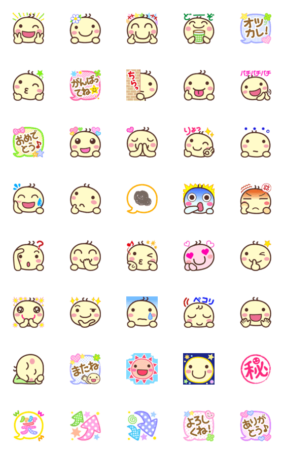 丸い顔したお豆キャラクター「まめちゃん」絵文字第二弾。トーク画面を可愛く楽しく、いろんな気持ちを表現して伝えてくれます。