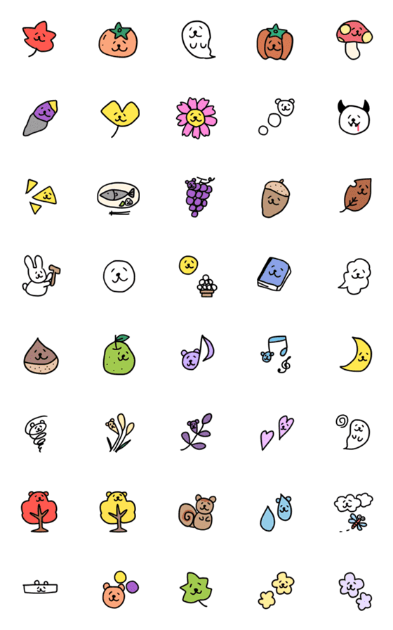 全ての絵文字にクマさんの顔、秋はいつでも使えます!