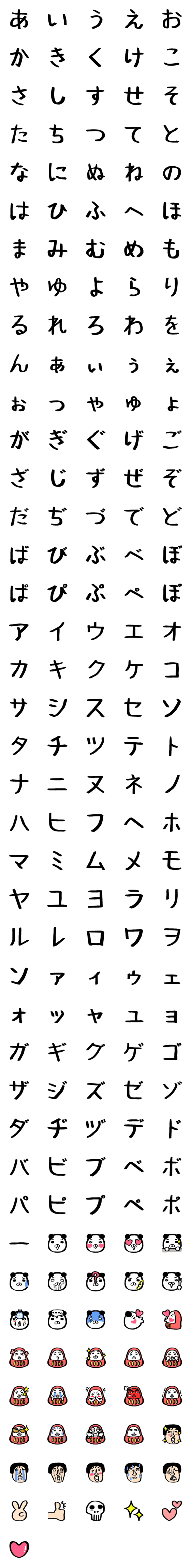 あまり上手くないが、すごい下手というわけでもない文字と、パンダなどのさまざまな表情の絵文字です。