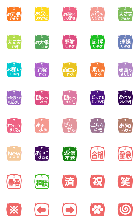 ずんぐりとした猫の吹き出し絵文字。学生さん社会人さんバイトでも仕事でも使いやすい敬語にしてみました。