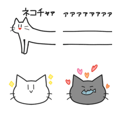 いっぱいのびるネコチャァンの絵文字。真ん中のパーツでたくさんのばして遊んでね。使いやすいお顔の絵文字も入ってます。