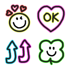 ネオンカラーのニコちゃんセットと色々日常の毎日使いやすい絵文字のセットです。