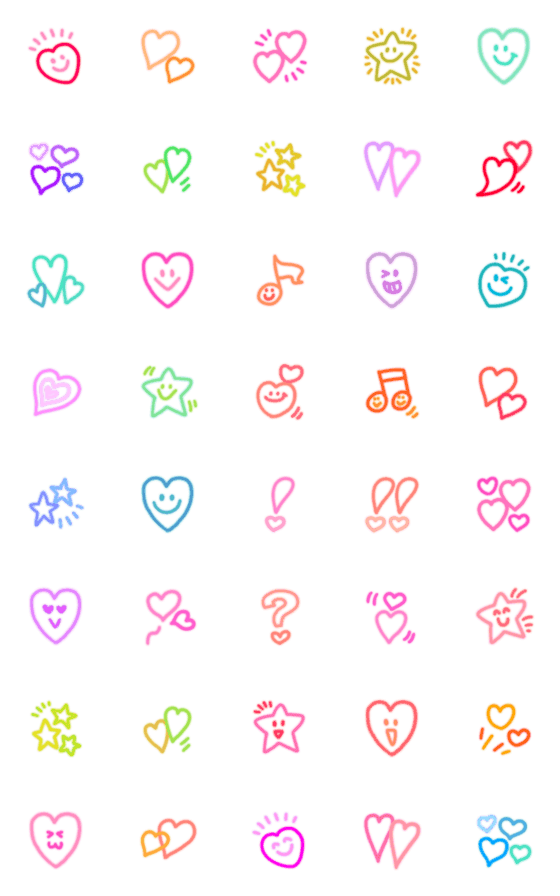 キラキラさりげないネオン風の線画がおしゃれで可愛いカラフルハート&ニコニコフェイス&スター(星)の絵文字です♥️