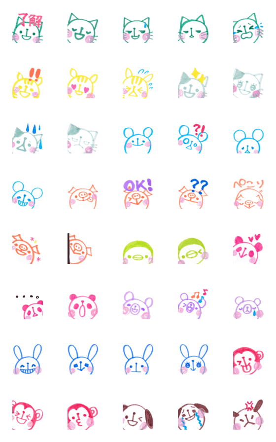 まるいねことどうぶつたちの絵文字です。まるねこ絵文字第3弾!みんな[どアップ]です♪