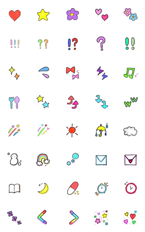 見やすく使いやすい、カラフルな絵文字です。シンプルに彩ってください☆ハート 星 花 ゆるかわ かわいい