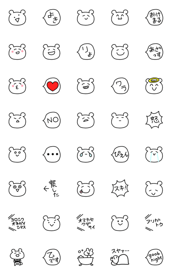 会話に使いやすいゆるいくまの絵文字です♪ふきだしとゆるいくまを色々組み合わせて使ってみてください♪