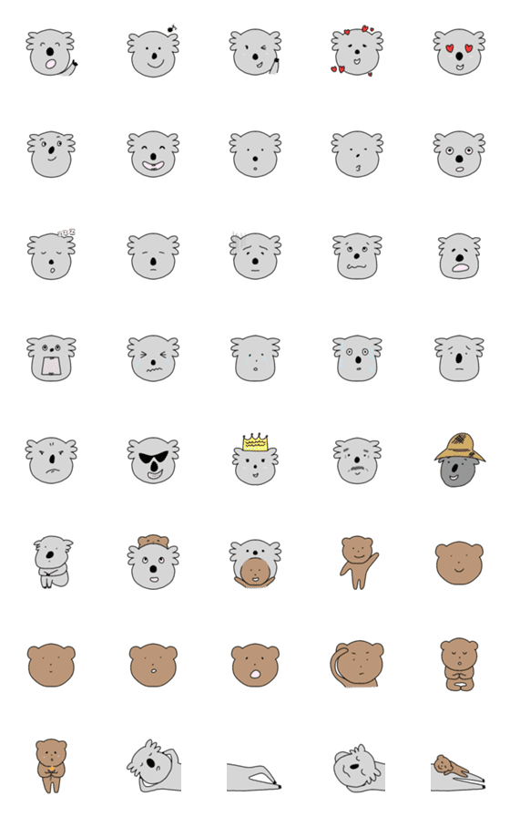ゆるかわコアラとおともだちくま。絵文字バージョン。