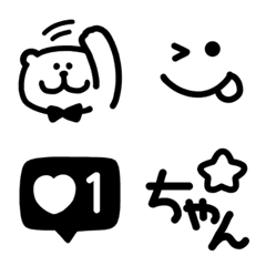 文字色に合わせたモノトーンで統一感◎小さくても見やすいシンプル太めな記号、表情、文字のデコセットです。モチーフ、感情、語尾は会話に使いやすいものを集めました