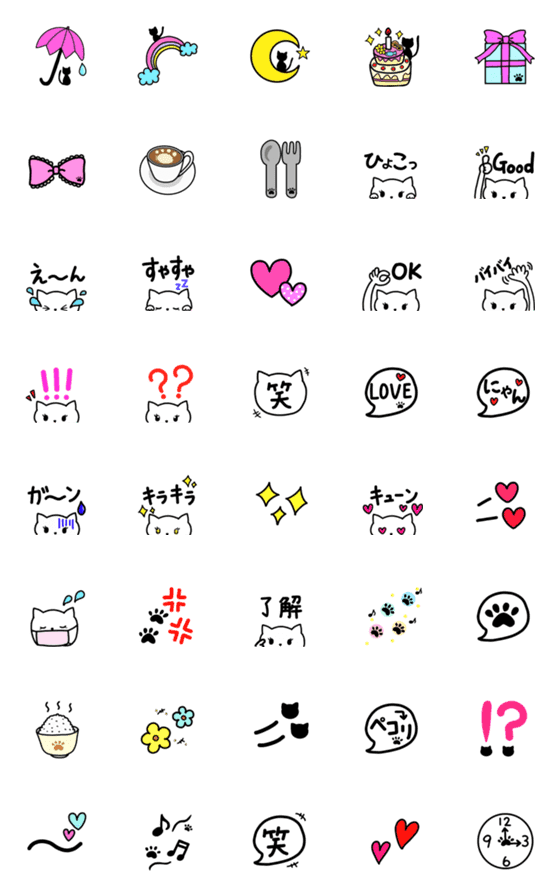 ねこ好きな人にはたまらない、ねこのモチーフの絵文字がたくさんです。大人かわいく使いやすい絵文字が揃っています♡