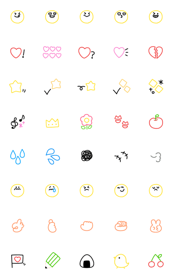 シンプルで使いやすい絵文字をあつめました。よく使う絵文字のセット! 基本の絵文字/かわいい/返信/便利/大人可愛い/手書き/文末/スマイル/カラフル
