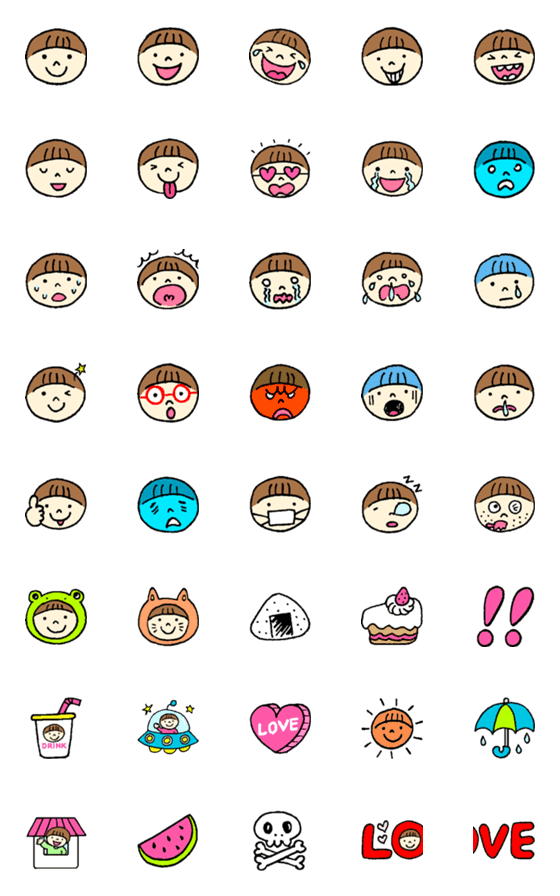 まんまるとしたおかっぱくんの毎日使いたくなる絵文字です♪