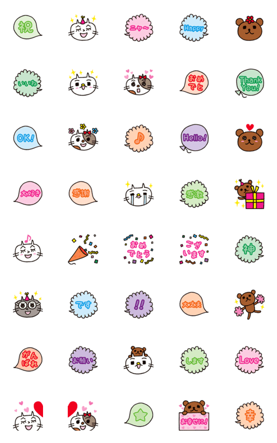 ニャンコたちとクマちゃんのお祝い絵文字です!