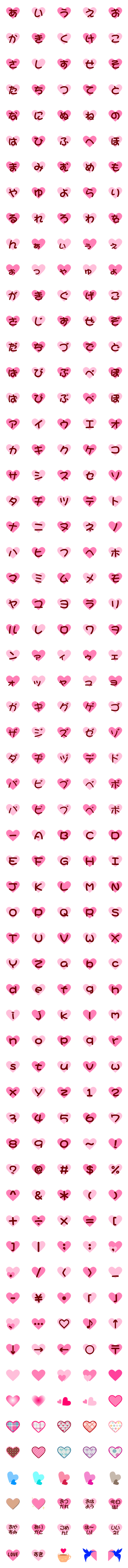 かわいいハートの絵文字&デコ文字(ひらがな・カタカナ・アルファベット・数字・記号・あいさつ等)のセットです。