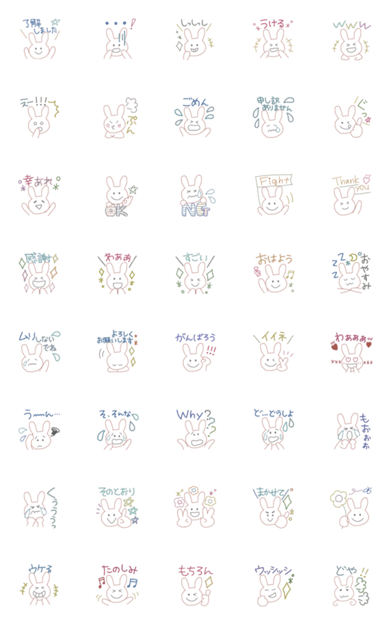 カラフル/パステル/手書き/うさぎ/文末/色鉛筆/挨拶