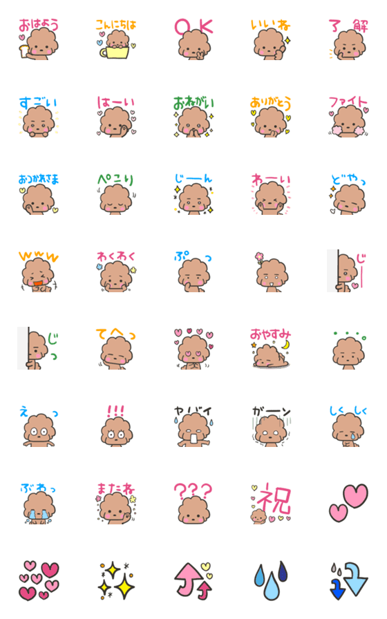 トイプードルの女の子、ビビさんの絵文字です。文字をカラフルにしてみました。