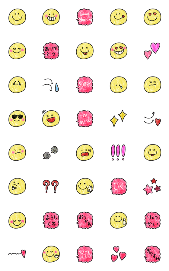 シンプルだけど可愛い水彩絵文字。言葉入り。
