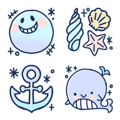 使いやすい涼しげ夏絵文字ブルー絵文字説明文 使いやすい涼しげ夏の絵文字です。顔文字/涼しい/リアクション/夏/オトナ女子/マリン/青色/グラデーション/水彩