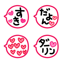ピンクの吹き出しにハートがいっぱいの絵文字。女子力高めでラブラブカップル、友達、家族に。【デコスケ絵文字】