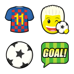 サッカー選手風の色々な表情のスマイリーにユニフォーム、試合観戦などに使いやすい吹き出しの絵文字セットです☆ ご家族やお友達との楽しいトークにぜひご活用ください^_^