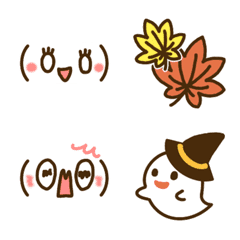 秋カラーのイラストと顔文字です。秋の日常会話に使いやすい。ハロウィンにも使えます。