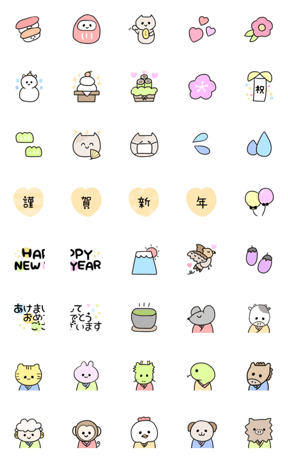 新年の挨拶に使えるゆるくてかわいい絵文字です。毎年使えます♩