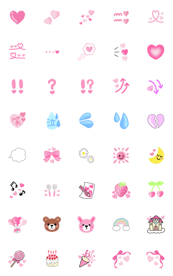 女の子の大好きが詰まった絵文字です。ピンク色が好きな方、メルヘンが好きな方に使ってもらいたいです。