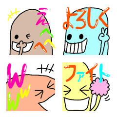 おでこが広めな色んな表情の日常会話で使いやすい顔の絵文字です。返事や文末、語尾に使いやすいです。文字はグミのようにぷるぷるしています♪