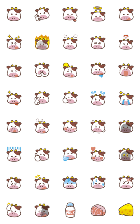 牛をモチーフにしたゆるい絵文字です。丑/うし/牧場/どうぶつ/動物/動物園/アニマル/シュール/ユニーク/かわいい/ゆるかわ/ほっこり/まったり/干支