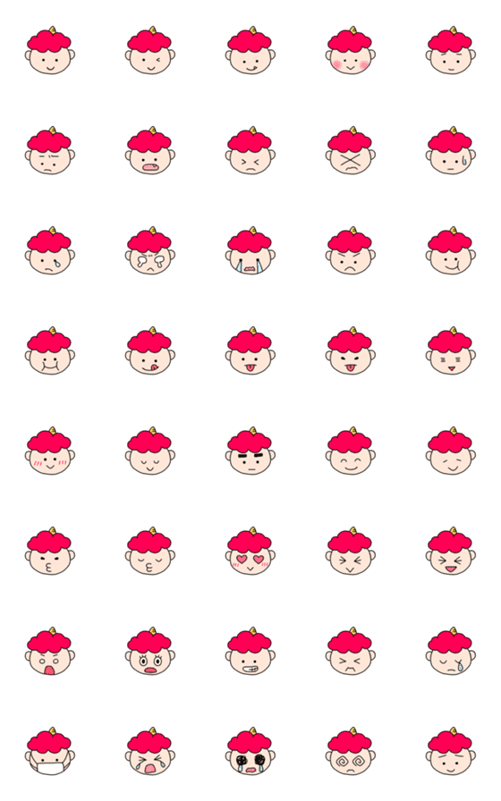 いろいろな表情で気持ちを伝える、かわいい赤鬼さんの絵文字です。