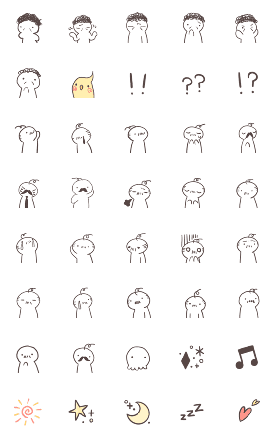 かわいいおじさんおばさんの絵文字です。可愛い/日常/大人/ネタ/面白い/オカメインコ/タコ/記号/モチモヨウ
