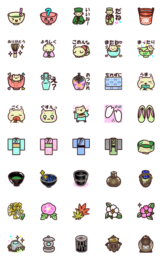 茶道や日本伝統文化が好きな方へ。あなたの心を絵文字にのせて、もっとかわいく、時には渋く、気持ちを伝えませんか。ニャンコがお相伴いたします。茶道具や着物、花など。