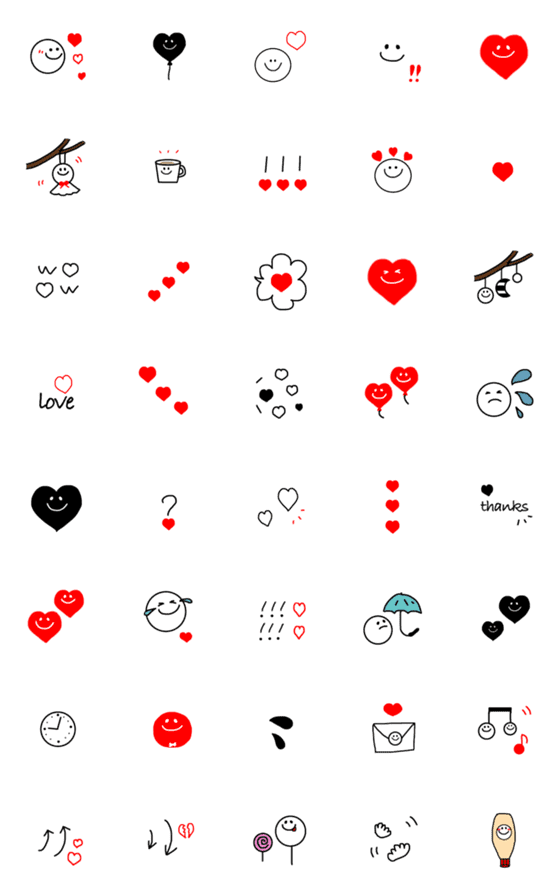 ・・赤と黒を基調にした毎日使える絵文字part2・・かわいい/ ニコちゃん/ ハート/スマイリー / smile/ happy / heart/ シンプル /