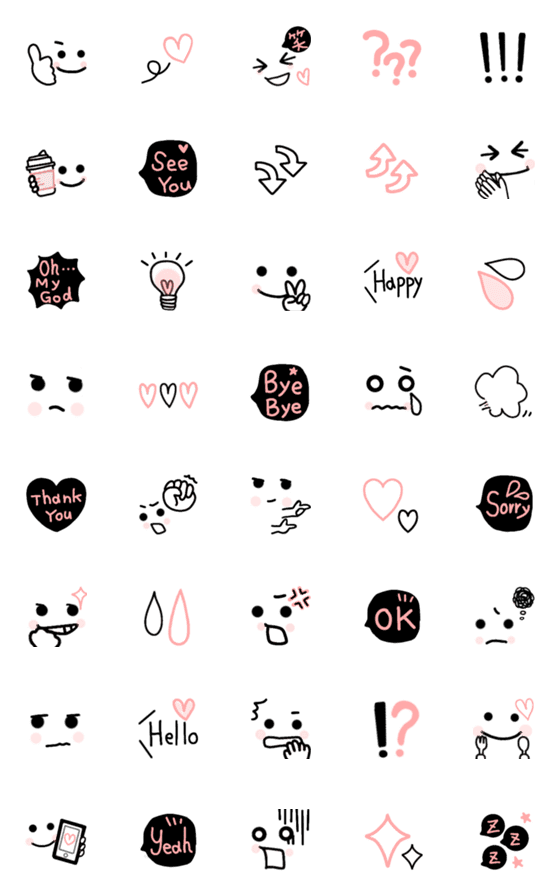 シンプルで使いやすい大人可愛いブラック×ピンク絵文字