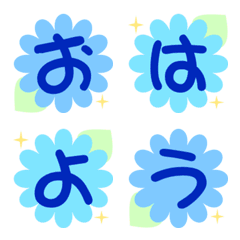 かわいいお花(ライトブルー・青色系)の手書き風のデコ文字です!ひらがな・カタカナ・アルファベット数字・記号等があります。