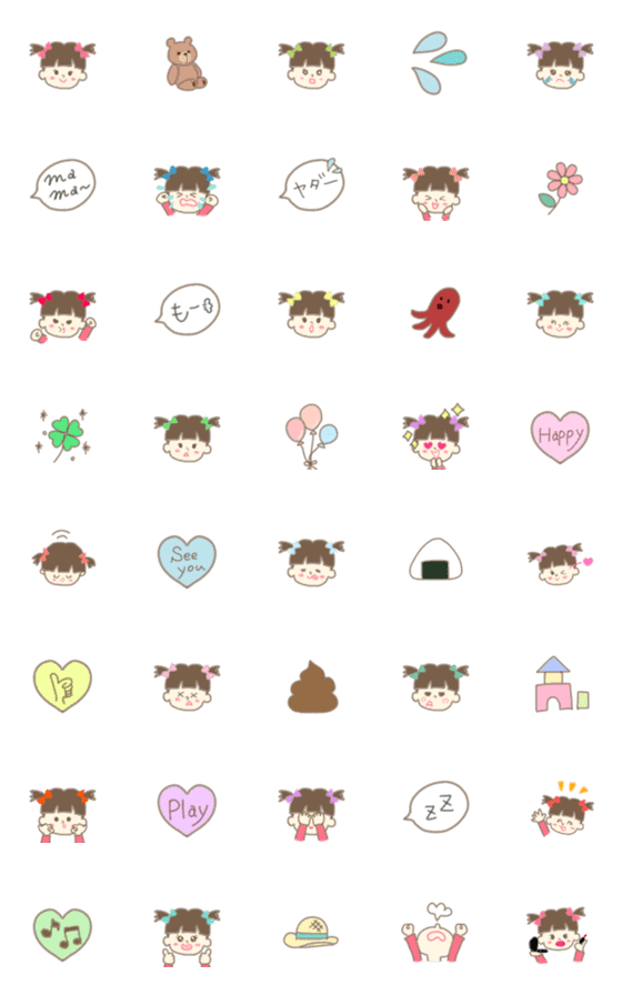 女の子/赤ちゃん/こども/子供/可愛い/ブラウン/カラフル/1歳/2歳/3歳/4歳/5歳/6歳/花/ママ/パパ/風船/ハート/おにぎり/絵文字/
